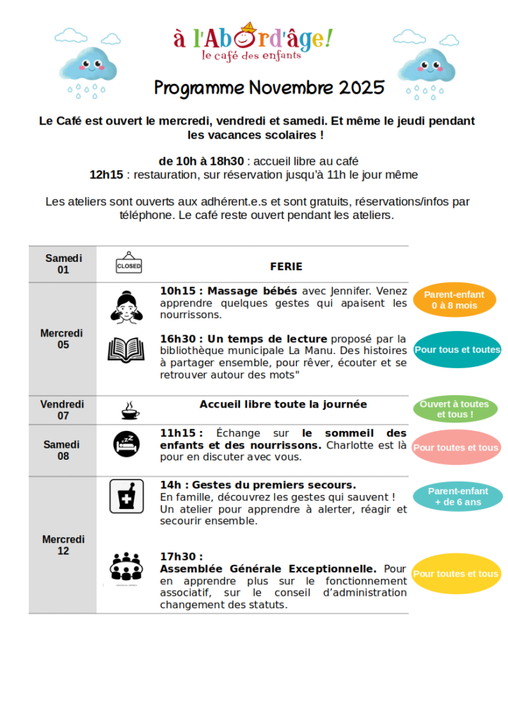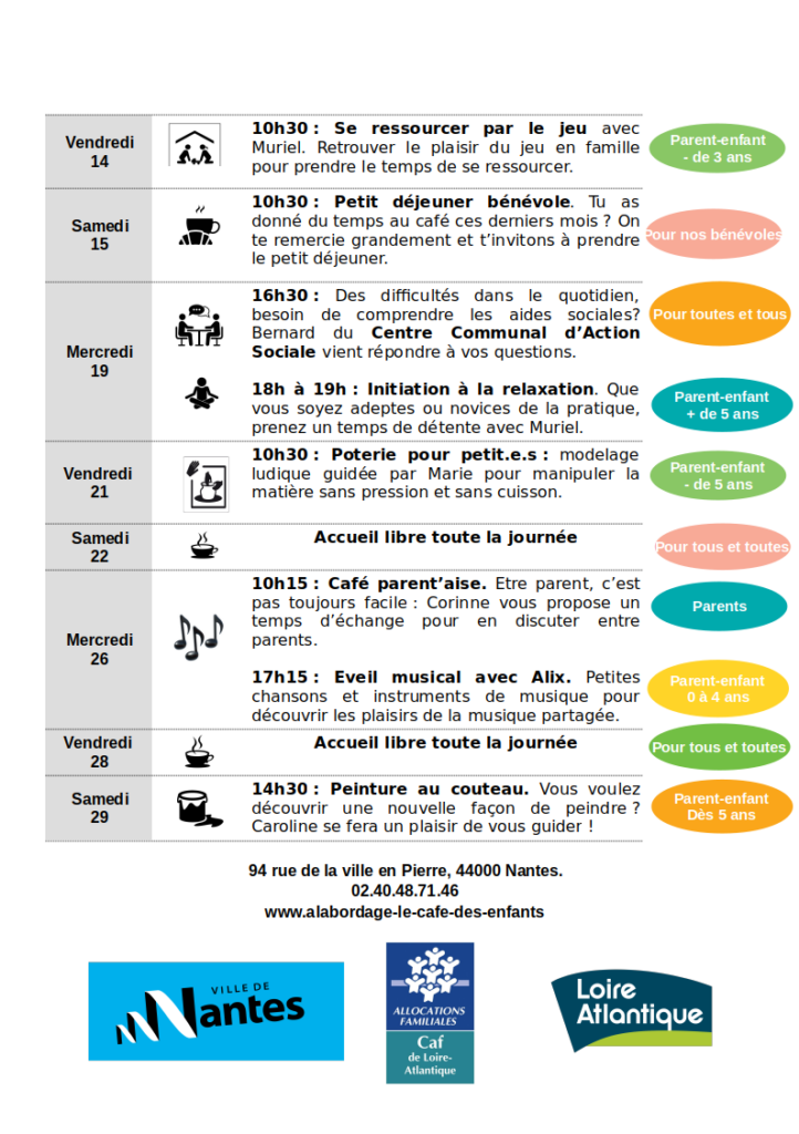 N’oubliez pas de nous appeler pour réserver votre place lorsque l’activité nécessite une inscription !